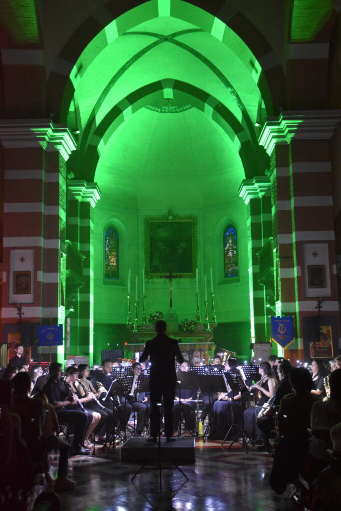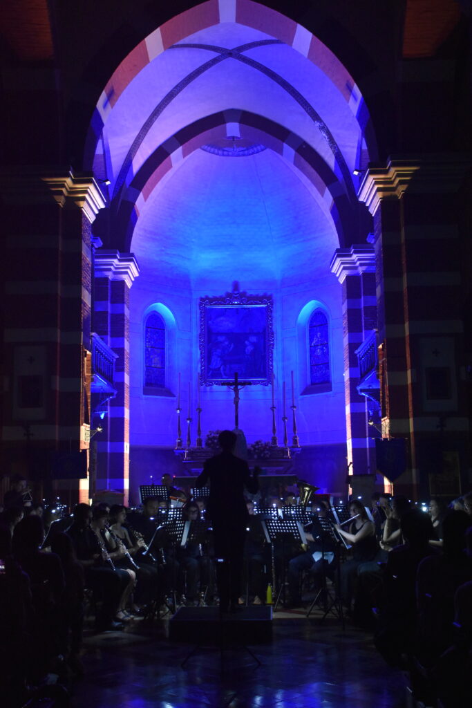 Il concerto è proseguito con l’esibizione della banda senior, che ha aperto con l’inno del Corpo Bandistico Urago Mella, composto appositamente per l’occasione dal talentuoso compositore Olmo Chittò. La serata è continuata con una serie di brani studiati e preparati con cura nei mesi precedenti, resi ancora più suggestivi da un affascinante gioco di luci.